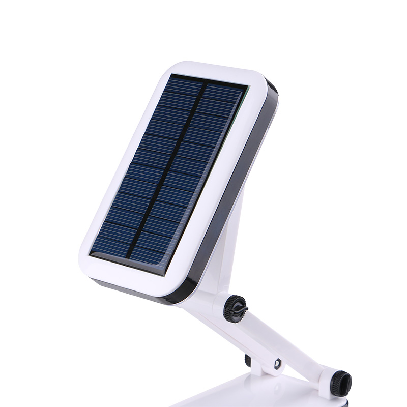 太陽能充電板:太陽能只要有光就可以充電, 讓陽光也能輕松轉化為能量。 220V電源充電:內置800mAh大容量電池,充滿電可連續使用6小時。 時尚折疊設計:燈頭可左右120度自由調節,可根據您的需求, 調整光源高低,照明范圍大小, 使光照更舒適。 貼片式LED光源:采用18顆進口貼片LED燈,比普通LED燈提高50%亮度與壽命。
